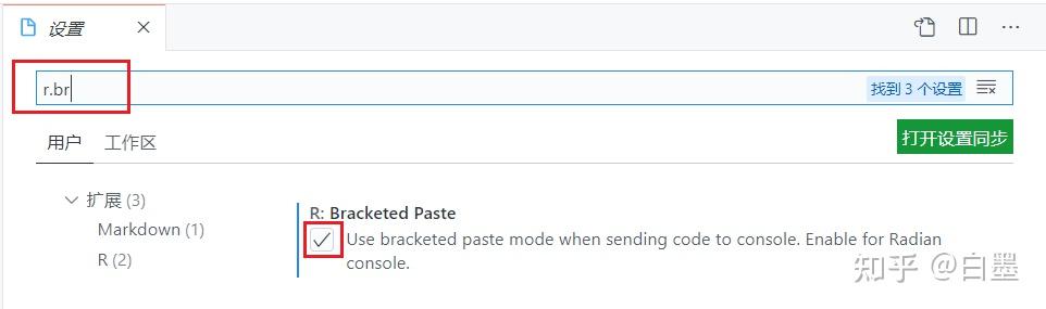 2、根据不同操作系统,比如 windows 配置时,输入r.rterm.windows,填写 R 或 radian 路径。